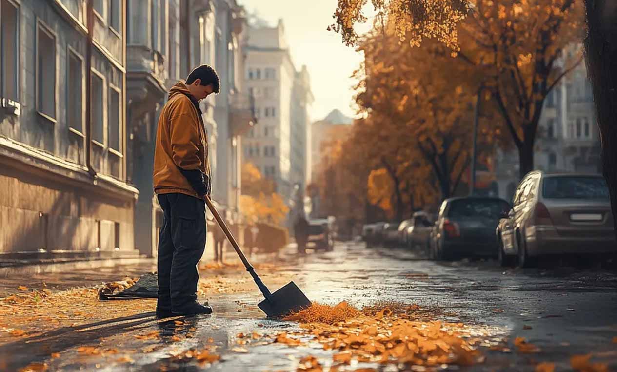 He moved slowly, carefully, as if each sweep of the broom was part of some quiet ritual. There was something peaceful in the way he worked, like he was part of the city itself.