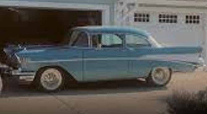 He yanked the tarp off the car like a magician revealing his trick. There it was — my old Chevy Bel Air. Faded blue paint, a few rust spots, but still beautiful to me.