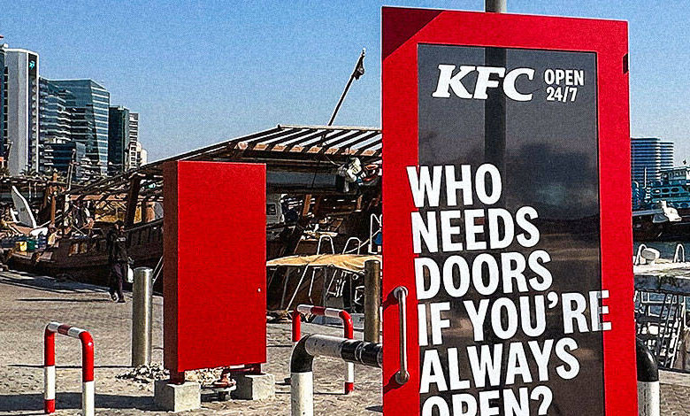 KFC’s decision to remove doors from select 24/7 locations is less a stunt and more a bold visual statement about constant availability. Doors traditionally symbolize opening and closing, so removing them reinforces the idea that the restaurant never shuts. Instead of relying on signs or slogans, KFC turns architecture into messaging. In a crowded advertising landscape, the absence of doors becomes a powerful and instantly understandable symbol of round-the-clock service.