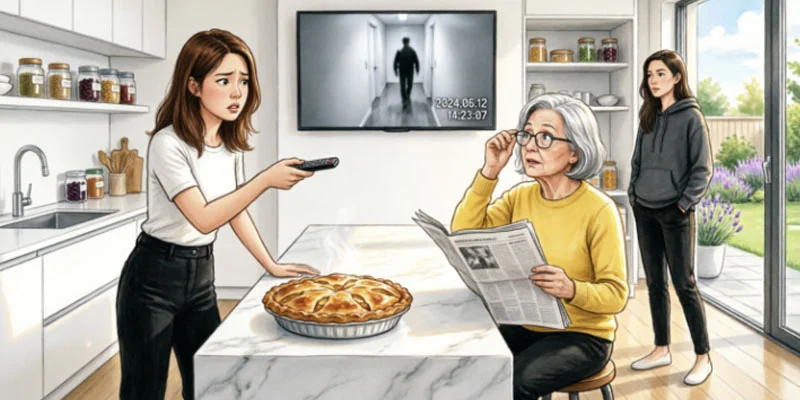 I slipped on a robe, turned off the main lights, and stood in the shadows of my living room. The city glowed behind the windows. My small bookshelf camera blinked a soft red dot, quiet and patient.