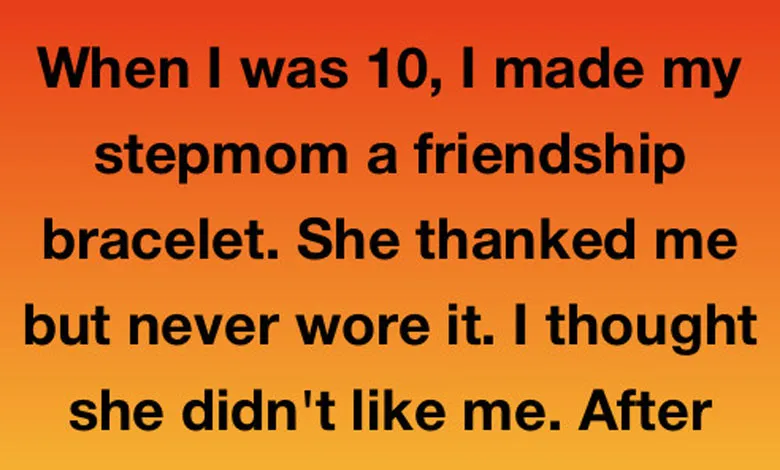 When I was 10, I made my stepmom a friendship bracelet. She thanked me, but never wore it. I thought she didn’t like me. After she passed, I helped my dad pack her things. She had a huge jewelry box filled — but only one thing inside: my little bracelet. Dad said, “She used to open that box every night before bed. Said it was the most precious thing she owned.”